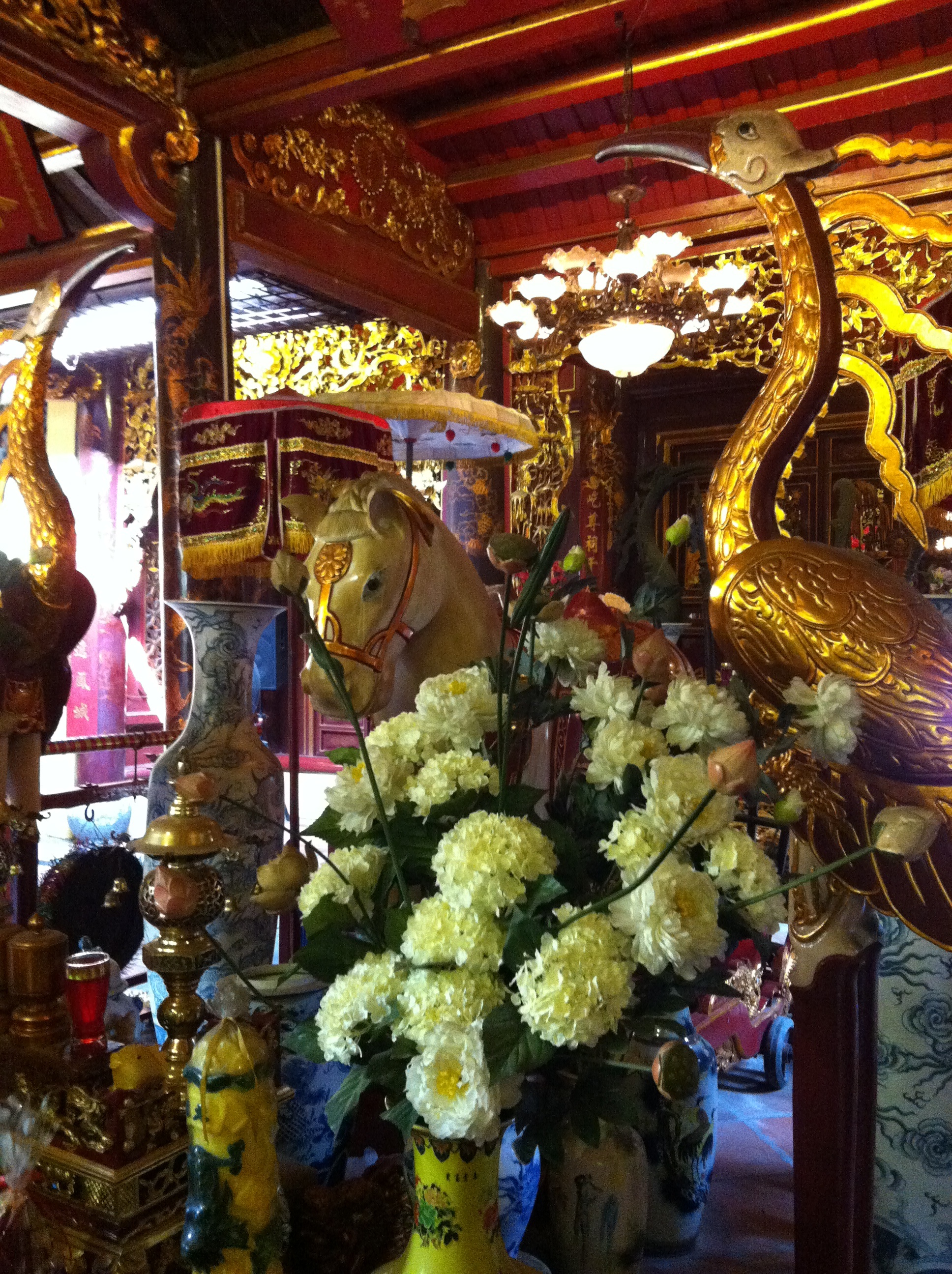 As we walked the quiet path, only hearing the soothing purr of long boats on the Red River, we came across a Buddhist shrine that was a lesson in compassion. Vietnamese society is dominated by family life, ties and obligations. Everyone is connected by language: sister, brother, aunt or uncle are terms extended throughout the fabric of society.