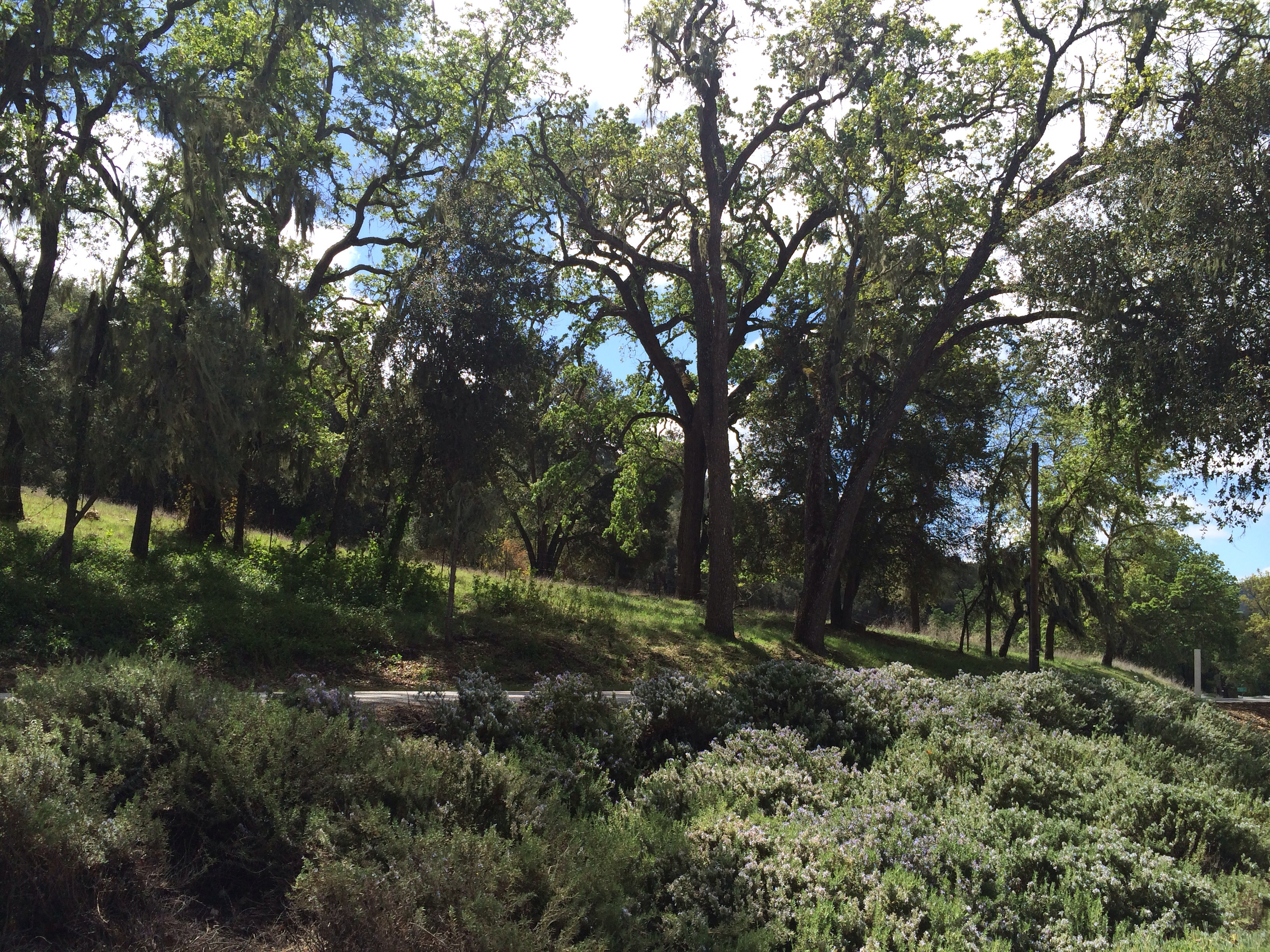And the oak trees are again inspiring. As is the loudest rooster I’ve ever heard. He must have had jet lag, because he was crowing like crazy in the early afternoon!