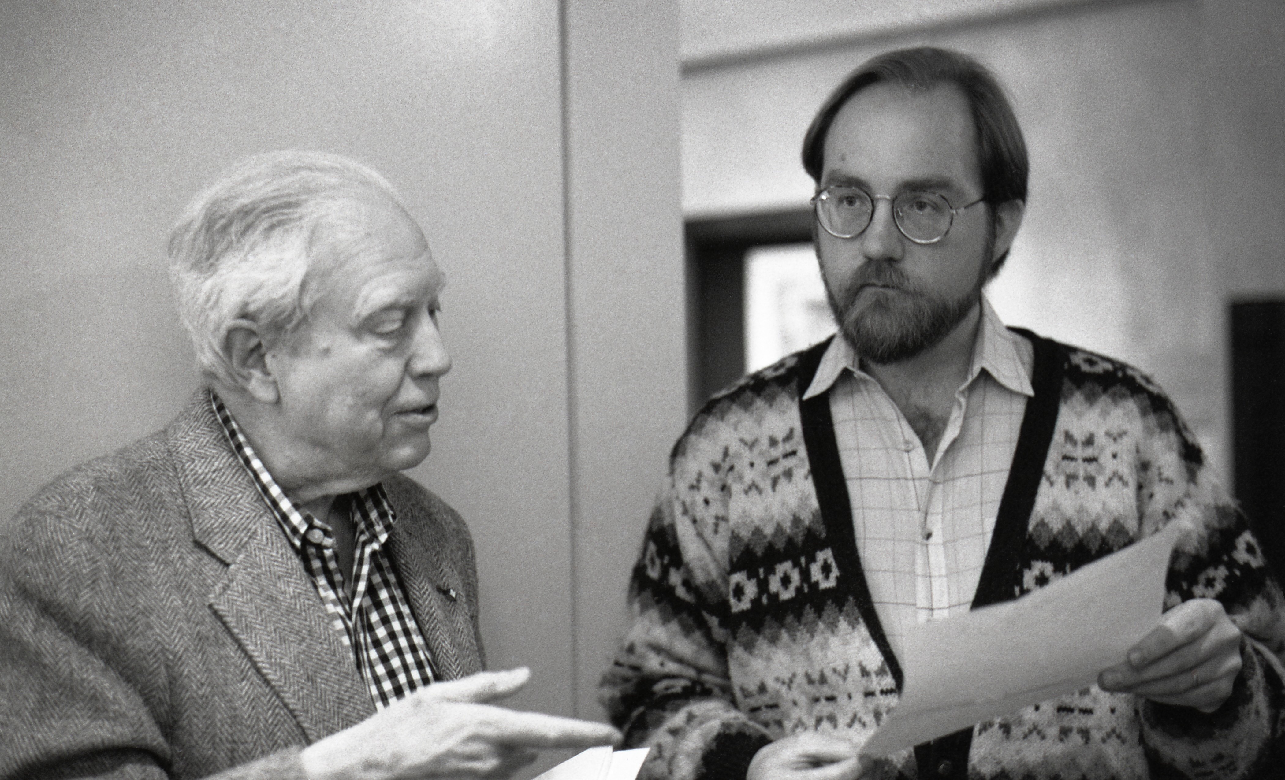 I had organized performances of Schoenberg’s Wind Quintet, Op. 26 for the opening ceremonies of the short lived Arnold Schoenberg Institute at USC, and remember well being on the staircase when the above photo was taken. I bring this up because of my first experience of Carter’s music. I had no idea who he was or had heard his music, and only had seen an article about the man who wrote impossibly difficult music to play. But he was on Boulez’s schedule both here and in New York (Boulez was working on Carter’s Symphony of Three Orchestras at the time of the photo above).
