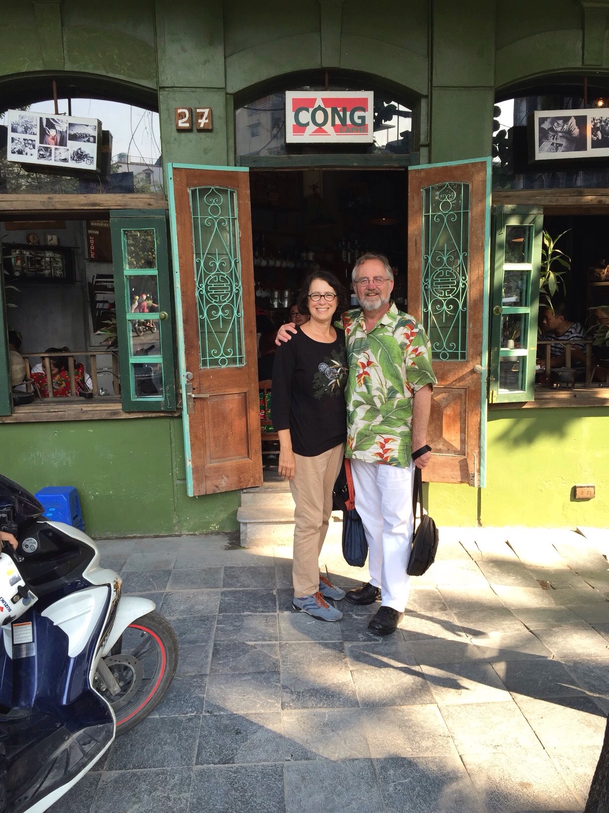 And now for a Health Spoiler Alert. Jan and I have never gotten sick from Hanoi street food (this is a possibility anywhere, not just in Vietnam). And that’s because we’ve followed the advice of our friends, composers Kim Ngoc Tran and Vu Nhat Tan. It’s their hometown and welcoming us for this trip was obviously a special occasion, so you can trust the following recommendations.