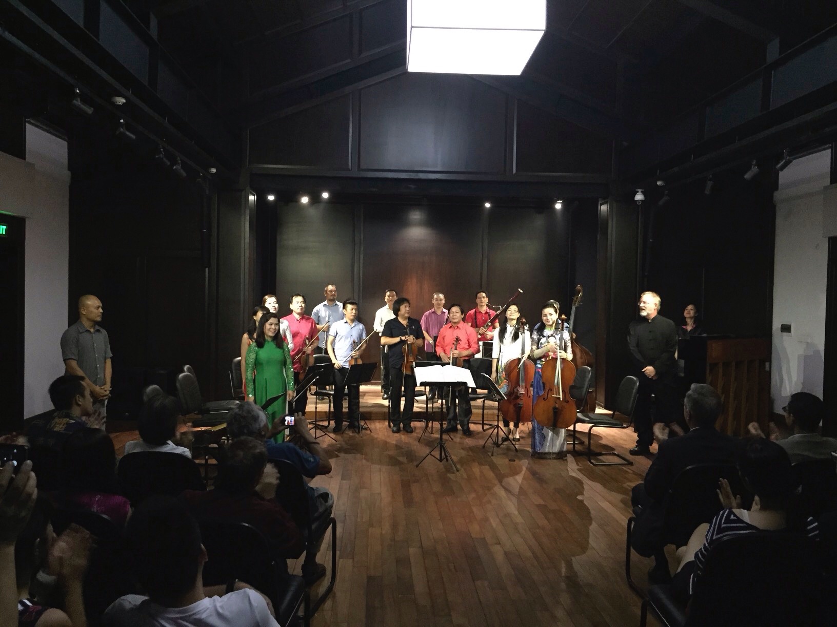 With all of these pieces of an international puzzle in place, it was now up to the players to put forward their own music, Vietnamese new music, to their audience. There was a lot of anticipation about that first audience. Would we have a good crowd? What would it look like? Vietnamese? Expats? And, most importantly for me, would the new challenges of new music improve onstage, or would the promise of the rehearsals suffer some first night jitters?