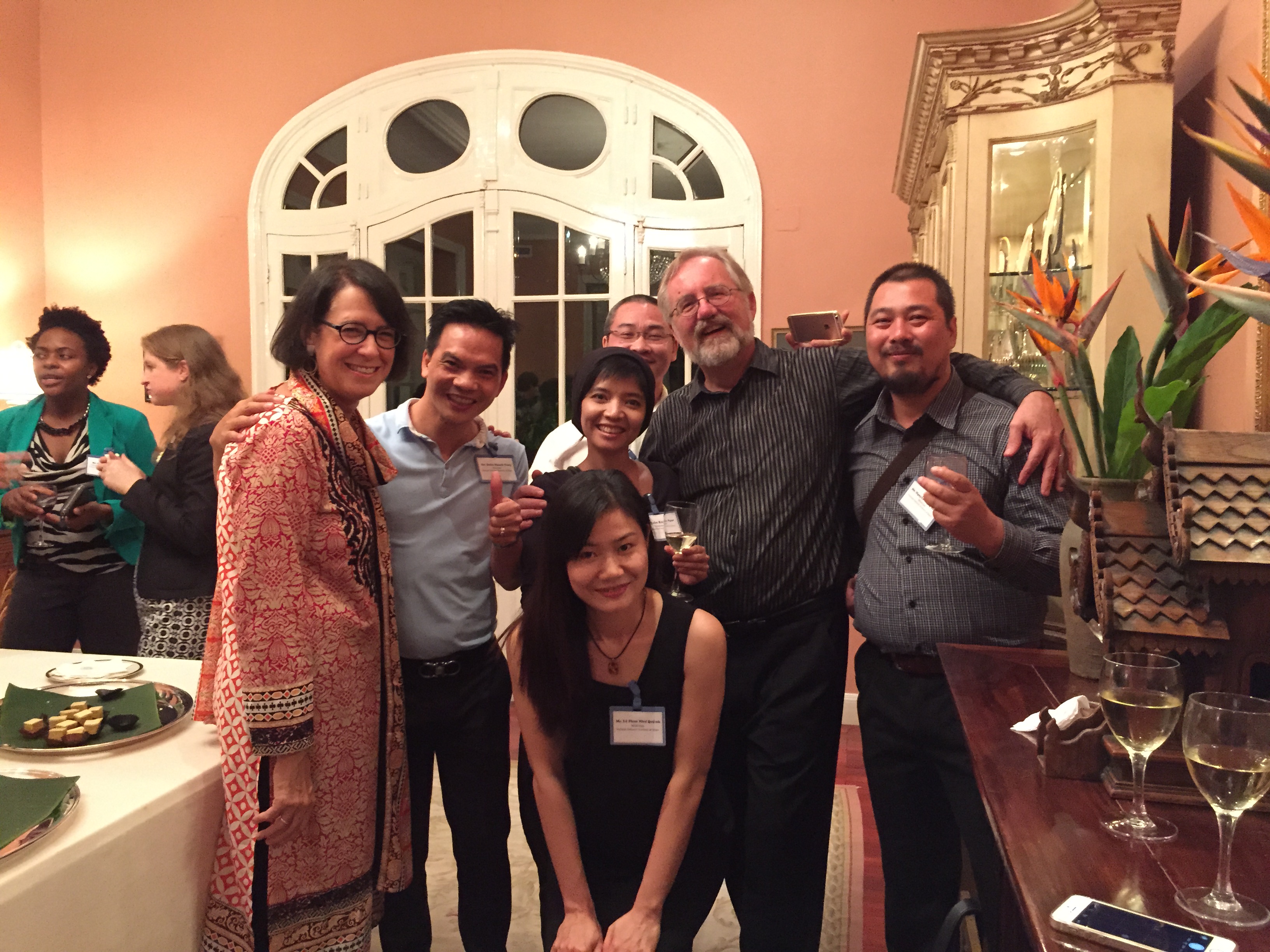Finally we took one last look into a camera before leaving the Ambassador and Clayton free to put their darling two youngsters to sleep. Jan and I were honored to meet their family quietly upstairs, away from the party, which gave us a good chance to converse with Ambassador Osius and Clayton. We discussed Indonesia, ASEAN issues, the Trans Pacific Partnership Treaty, Asia in general and of course our next steps in Vietnam, which are developing as I’m writing. It was a helpful moment.