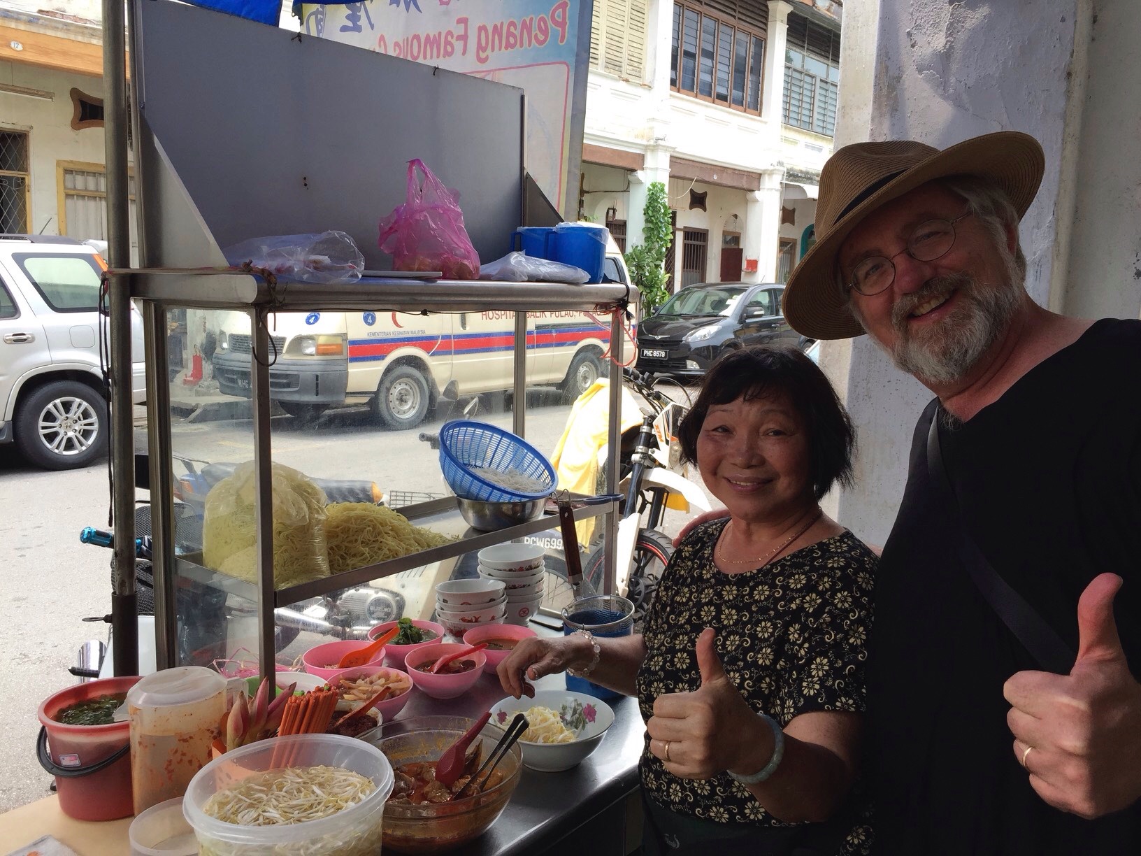 Georgetown is not that big, at least the UNESCO sections are all doable on foot, and there are rickshaws if you get fatigued (we never needed one). Wandering is key. Coming from a restaurant family, I can only tell you that Jooi Hooi Cafe on Penang Road deserves 3,000 Michelin Stars!
