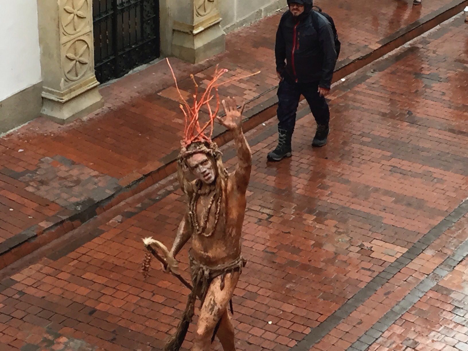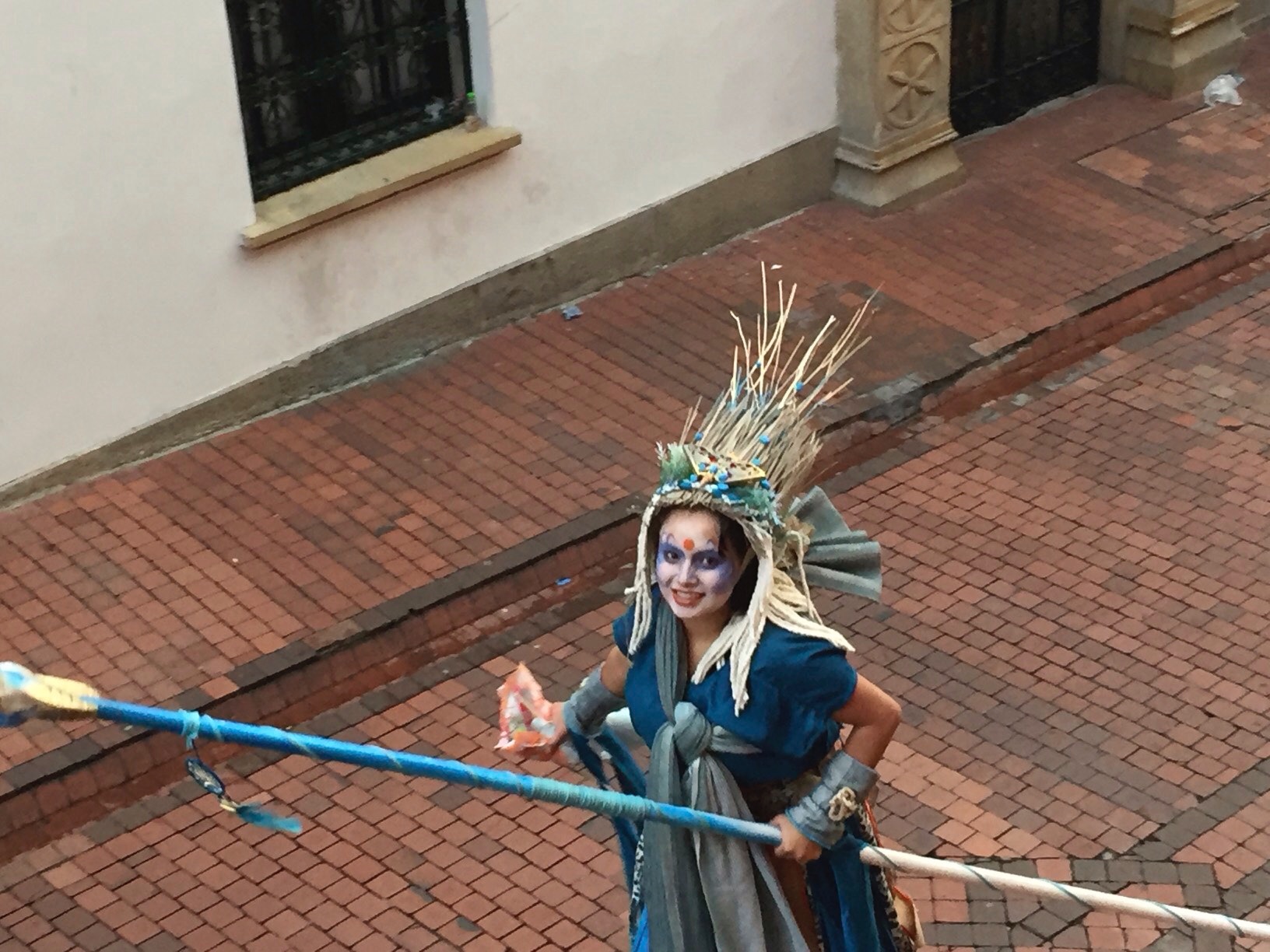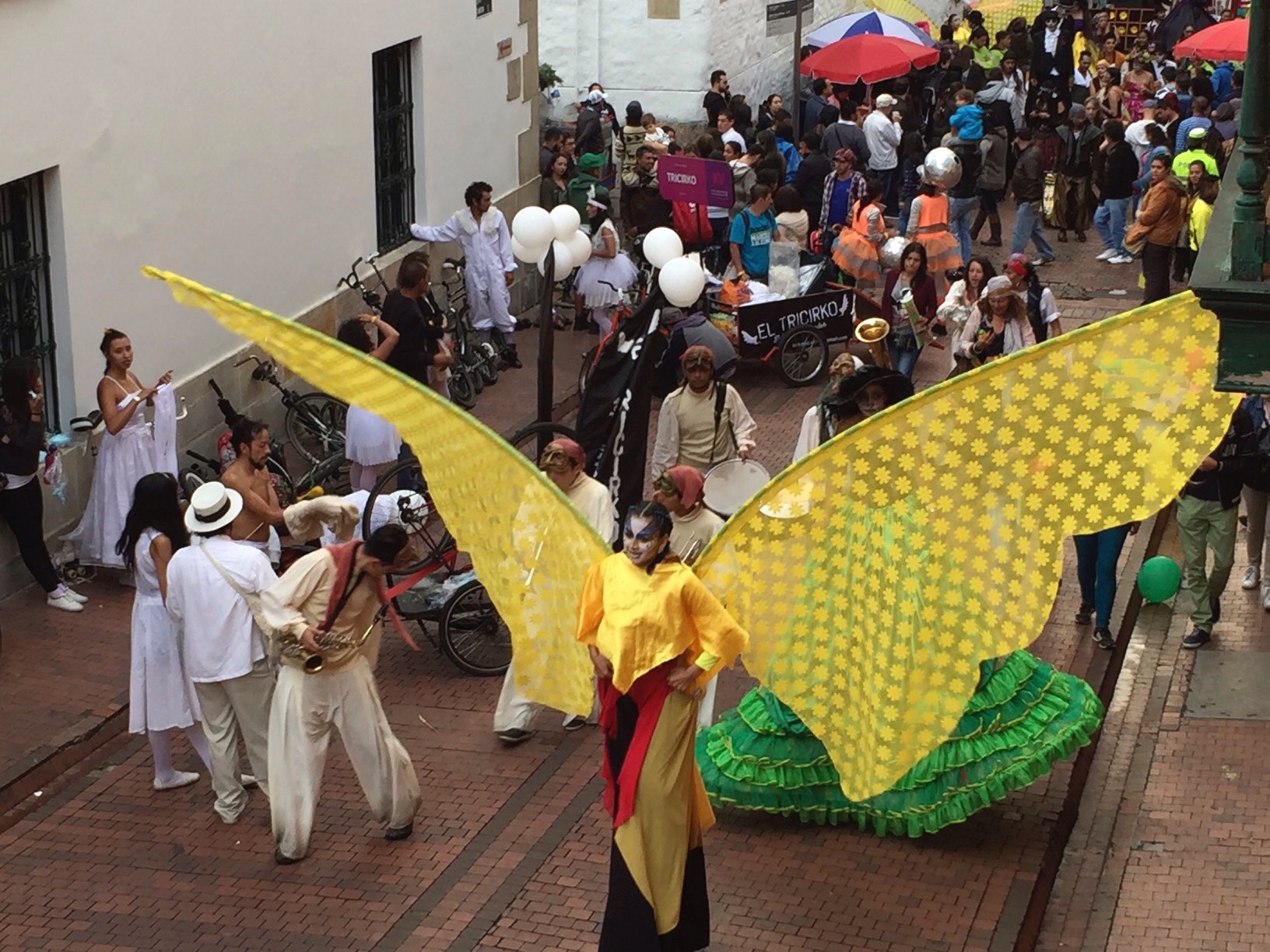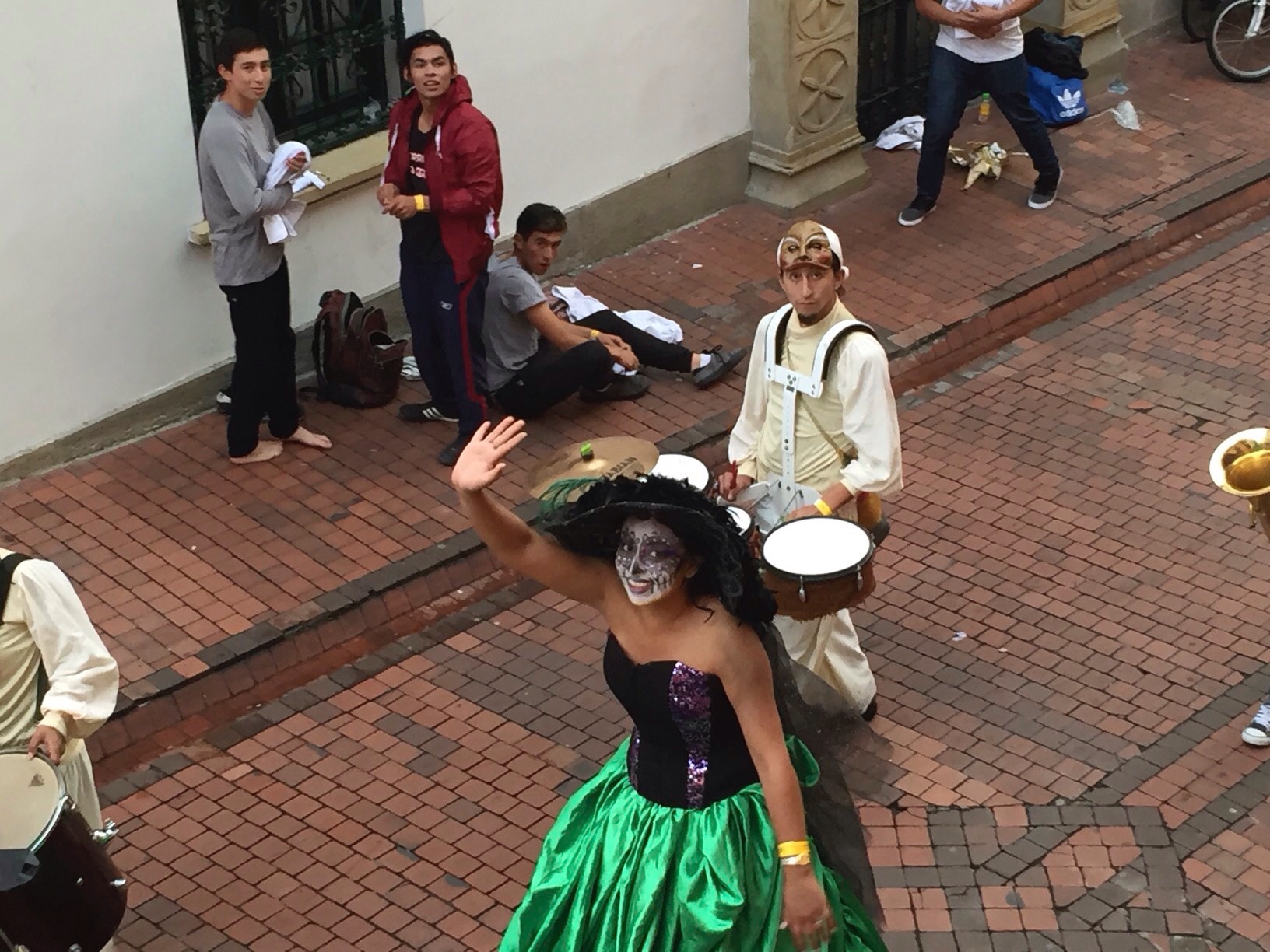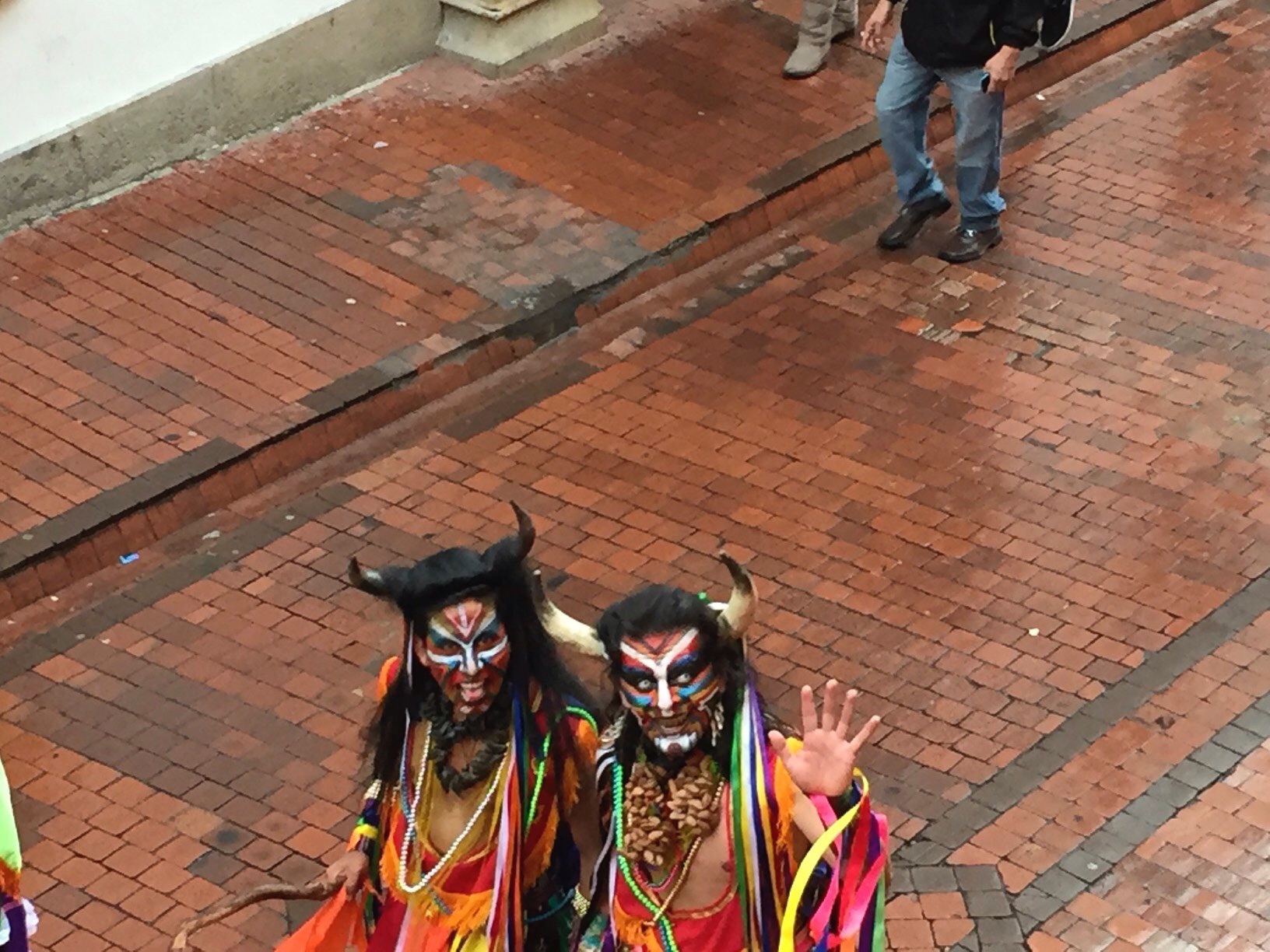As this parade continued on and on, Jan and I had no idea what it was celebrating. An early Semana Santa celebration? A typical Saturday afternoon in Bogotá? Beyond curious, I took a short break we observed in the parade to go downstairs to see if I could learn what this was all about. I found a security guard and asked if she could tell me what the commotion was for.