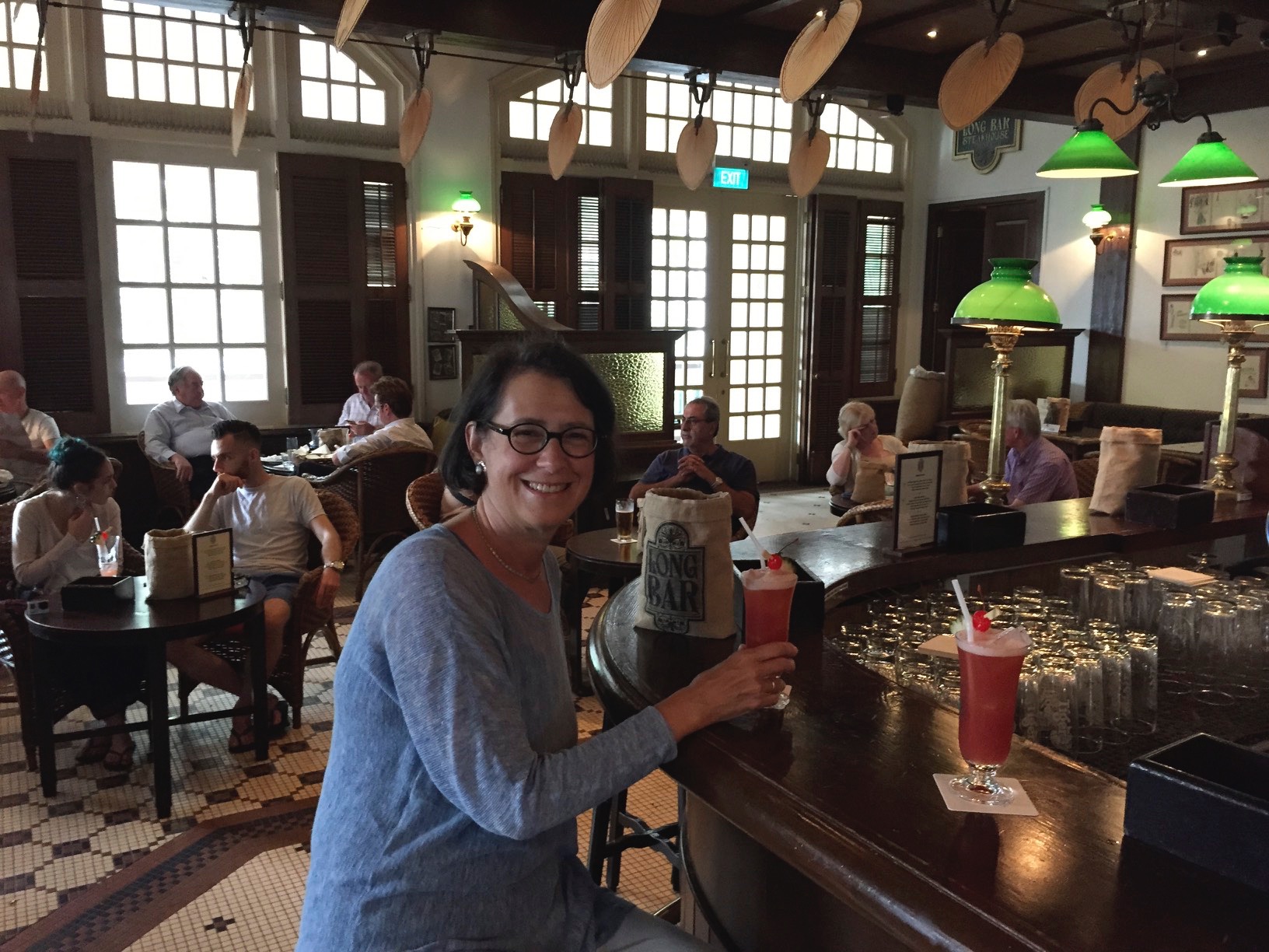 Jan and the Raffles’ Long Bar with her Singapore Sling and an unforgettable atmosphere for the stories of W. Somerest Maugham.