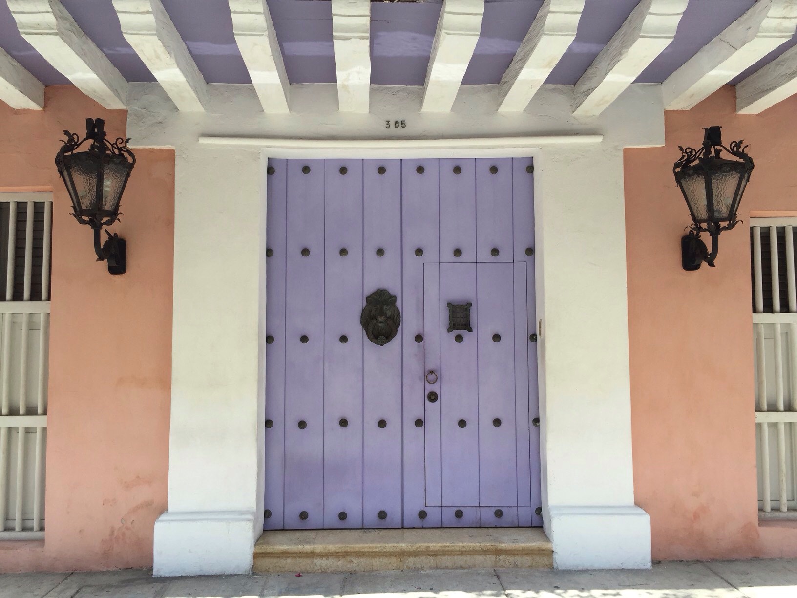 A lavender door in Cartagena, a UNESCO World Heritage City.